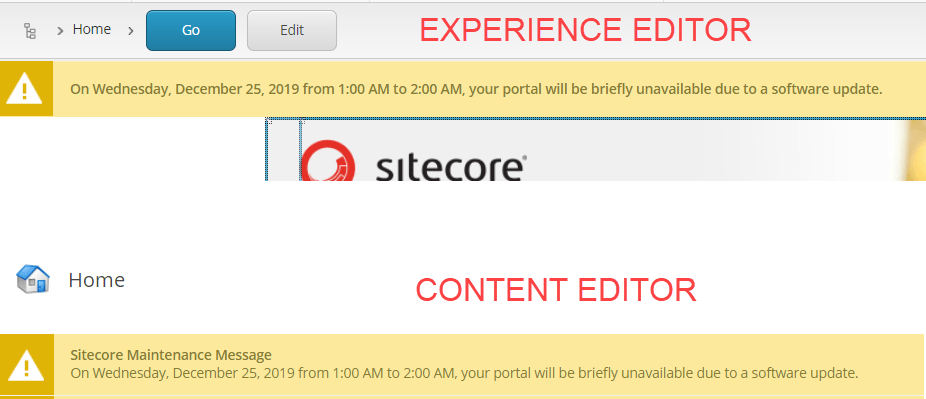 In Sitecore the best place to inform about maintenance is Content Editor and Experience Editor – places where content authors spend most of their time working with Sitecore. The best tool to use is of course Sitecore Powershell Extensions (SPE).